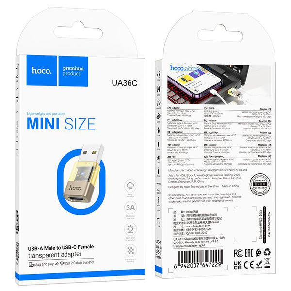 hoco UA36C USB Male to USB-C / Type-C Female OTG Transparent Adapter(Gold)