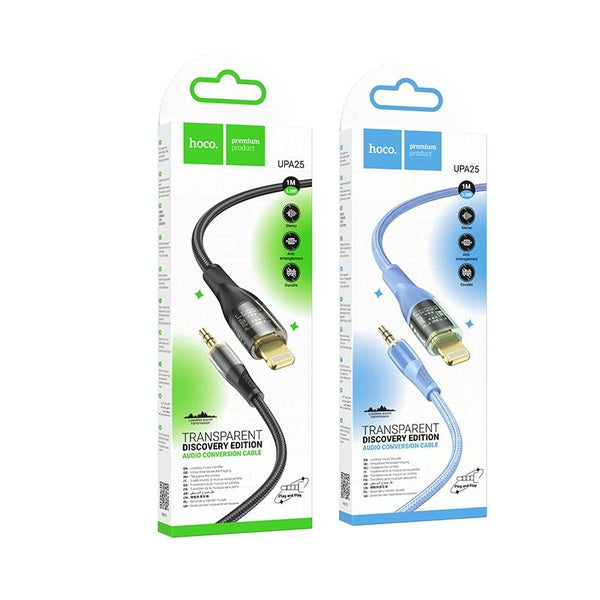 hoco UPA25 Transparent Exploration Version 8 Pin Digital Audio Conversion Cable, Length: 1m(Blue)