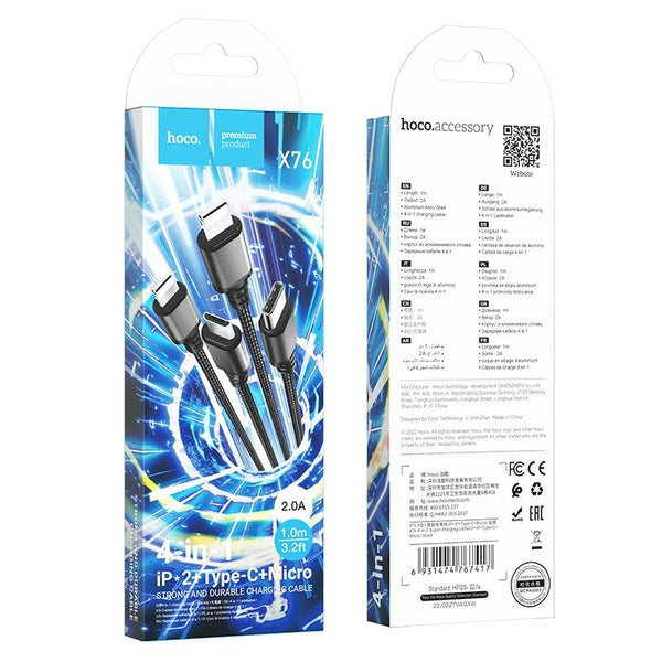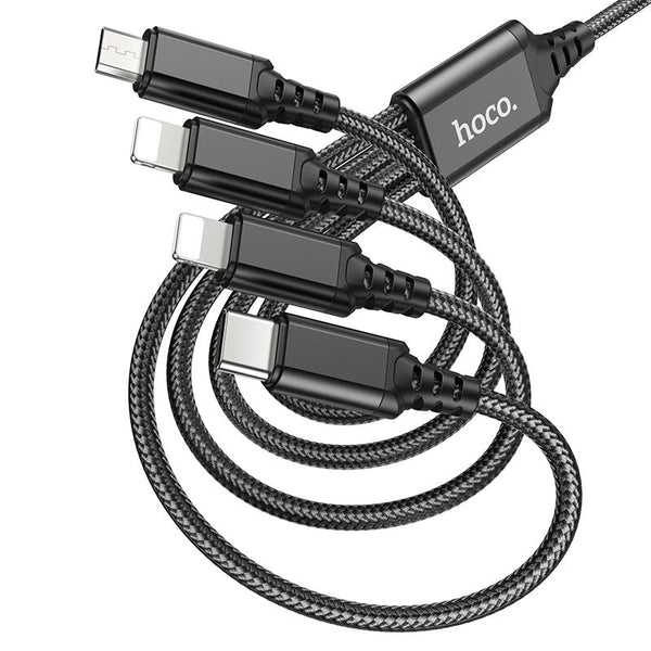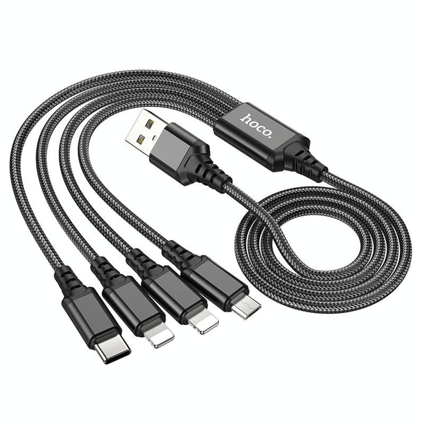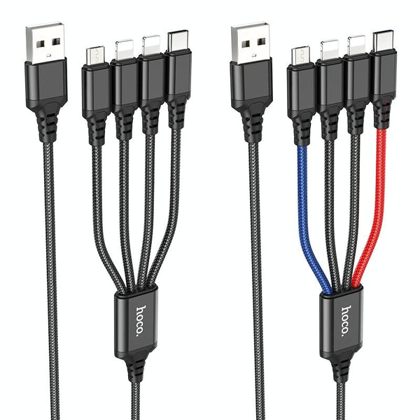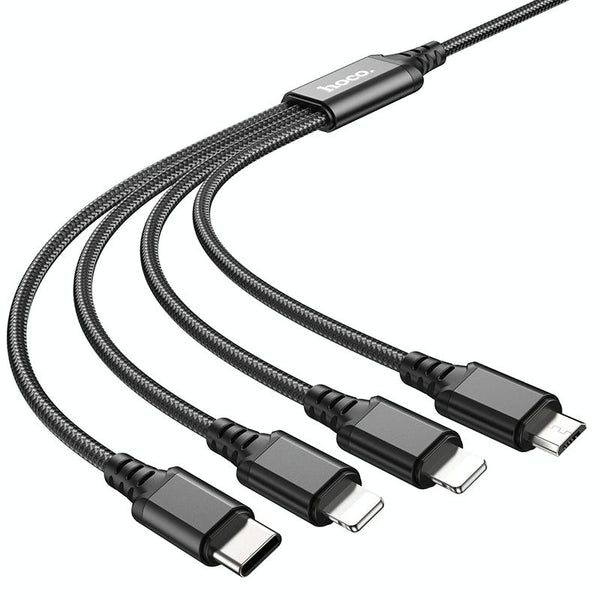 hoco X76 4 in 1 2A Dual 8 Pin + USB-C / Type-C + Micro USB Super Charging Cable,Length: 1m(Black)