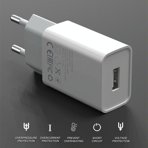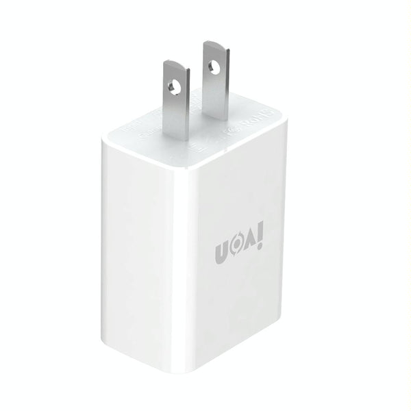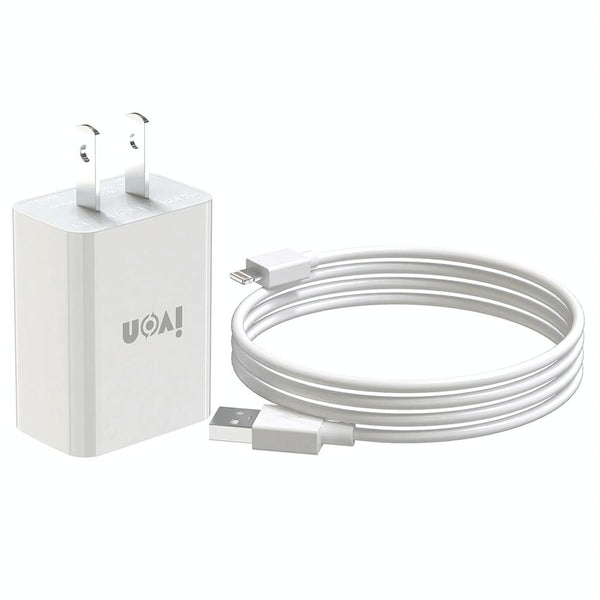 IVON AD-33 2 in 1 2.1A Single USB Port Travel Charger + 1m USB to 8 Pin Data Cable Set, US Plug(White)