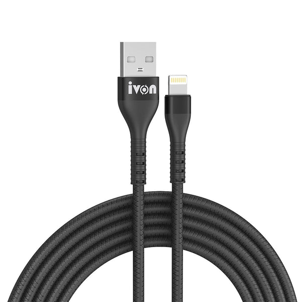 IVON CA92 2.4A Max USB to 8 Pin Rubber Fast Charging Data Cable, Length: 1.5m (Black)