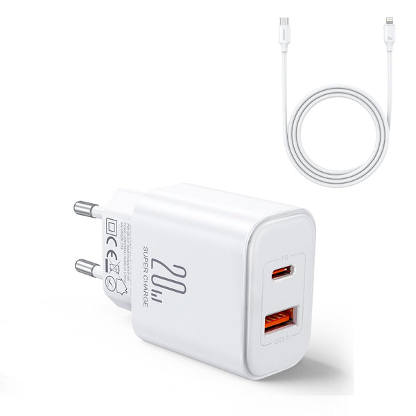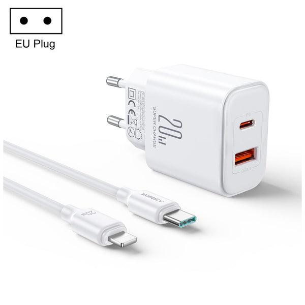 J0YROOM TCF05 20W USB+USB-C/Type-C Dual Interface Fast Charger Set, Specification:EU Plug(White)