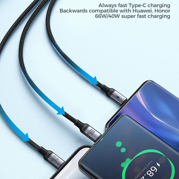 JOYROOM A21 100W USB to 8 Pin+Type-C+Micro USB 3 in 1 Charging Cable, Length: 1.2m(Black)