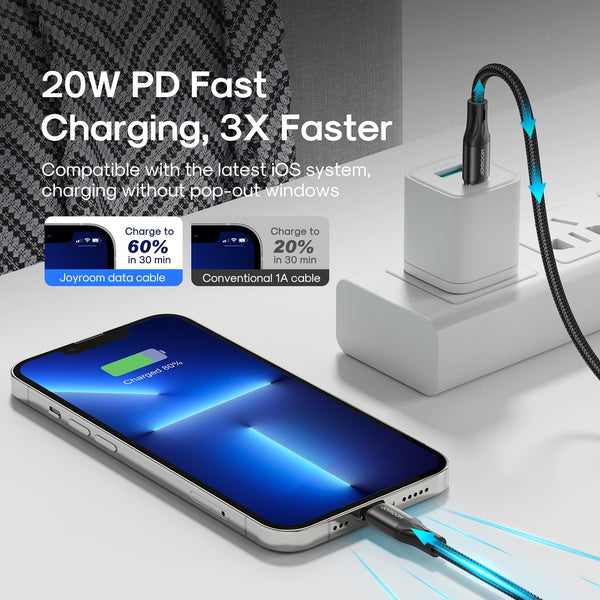 JOYROOM S-2024N1-PD 20W Type-C / USB-C to 8 Pin Fast Charging Cable, Length:2m(Black)