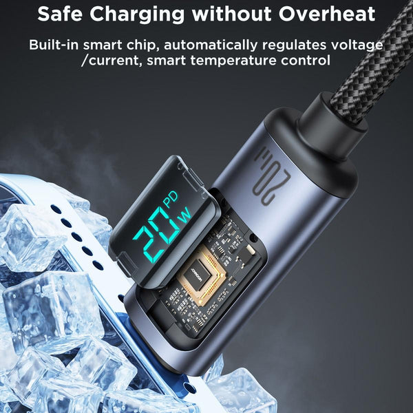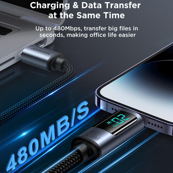 JOYROOM S-CL020A16 20W USB-C / Type-C to 8 Pin Digital Display Fast Charging Data Cable, Length:1.2m(Black)