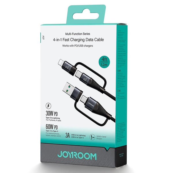 JOYROOM SA37-2T2 60W Multi-Function Series 4 in 1 Fast Charging Data Cable, Length:1.2m(Black)