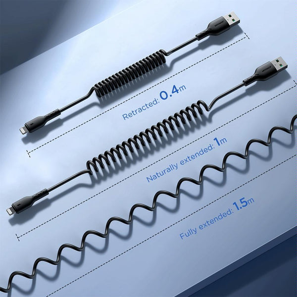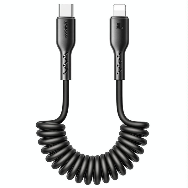 JOYROOM SA38-CL3 30W USB-C / Type-C to 8 Pin Coiled Fast Charging Data Cable, Length:1.5m(Black)
