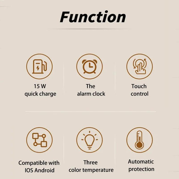 K22T 15W Multifunctional Rotatable Clock Night Light Wireless Fast Charger, Color: Wheat-color