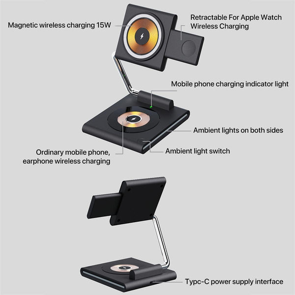 KTM8 15W 3 in 1 Portable Folding Magnetic Wireless Charger (White)