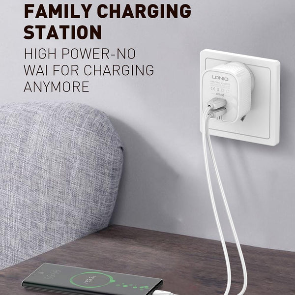 LDNIO A201 2.4A Dual USB Charging Head Travel Direct Charge Mobile Phone Adapter Charger With 8 Pin Data Cable(EU Plug)