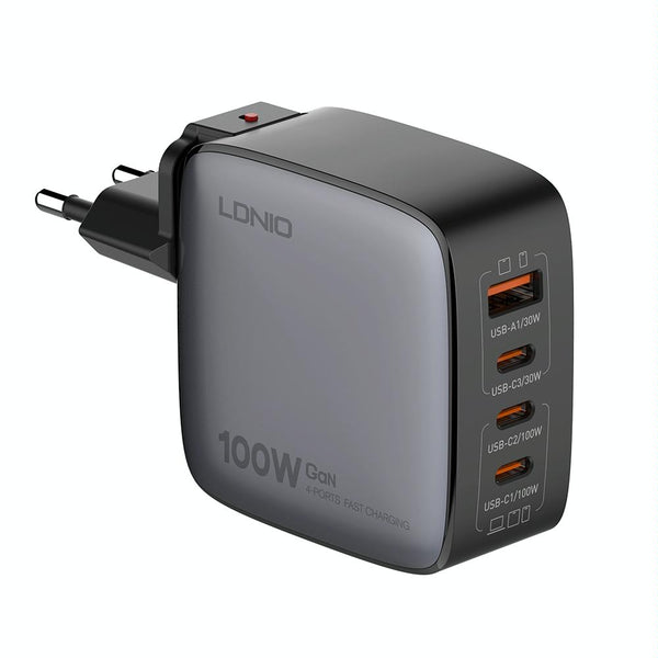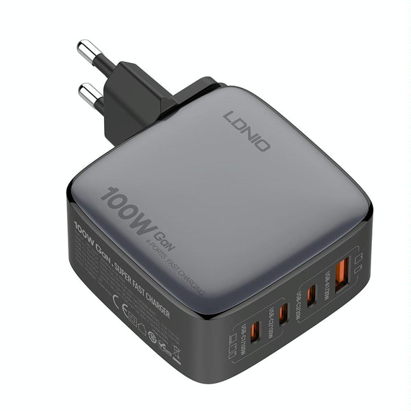 LDNIO Q408 100W GaN USB+3 USB-C / Type-C Interface Charger with 1m 100W USB-C / Type-C to USB-C / Type-C Data Cable, Plug Type:EU Plug(Black)
