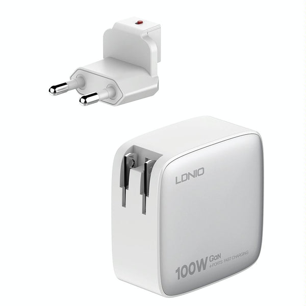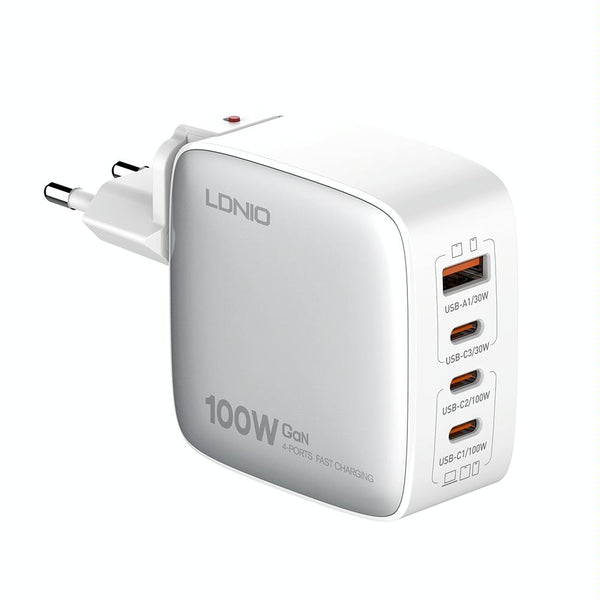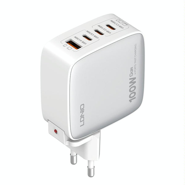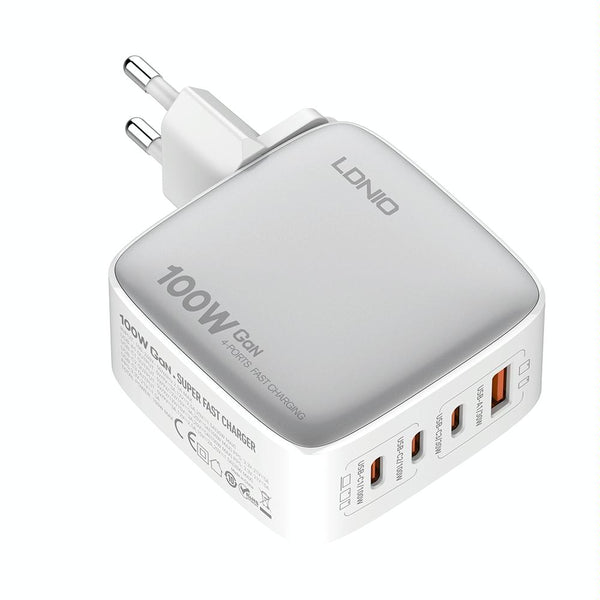 LDNIO Q408 100W GaN USB+3 USB-C / Type-C Interface Charger with 1m 100W USB-C / Type-C to USB-C / Type-C Data Cable, Plug Type:EU Plug(White)