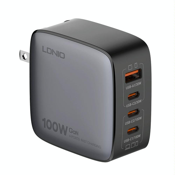 LDNIO Q408 100W GaN USB+3 USB-C / Type-C Interface Charger with 1m 100W USB-C / Type-C to USB-C / Type-C Data Cable, Plug Type:US Plug(Black)