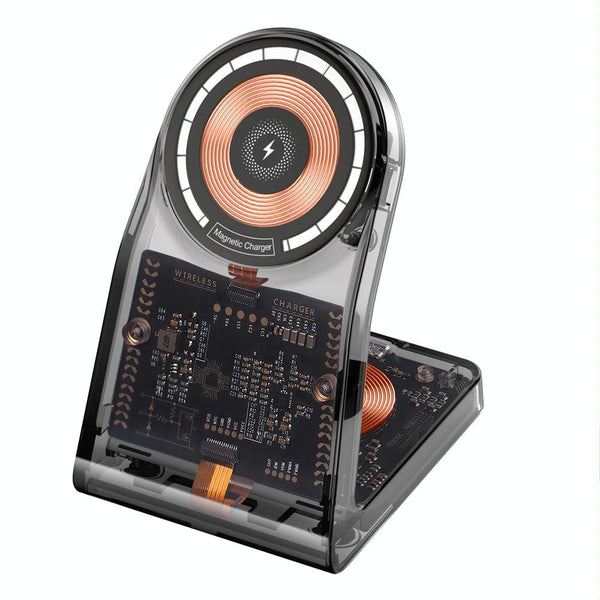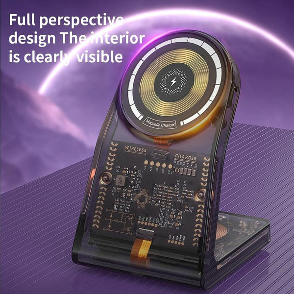 LFX-198 15W Transparent MagSafe Wireless Charging Stand with Removable Watch Charger(Black)