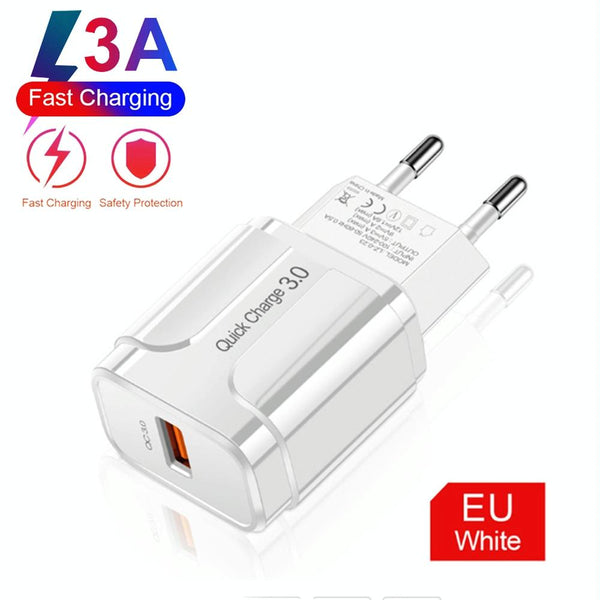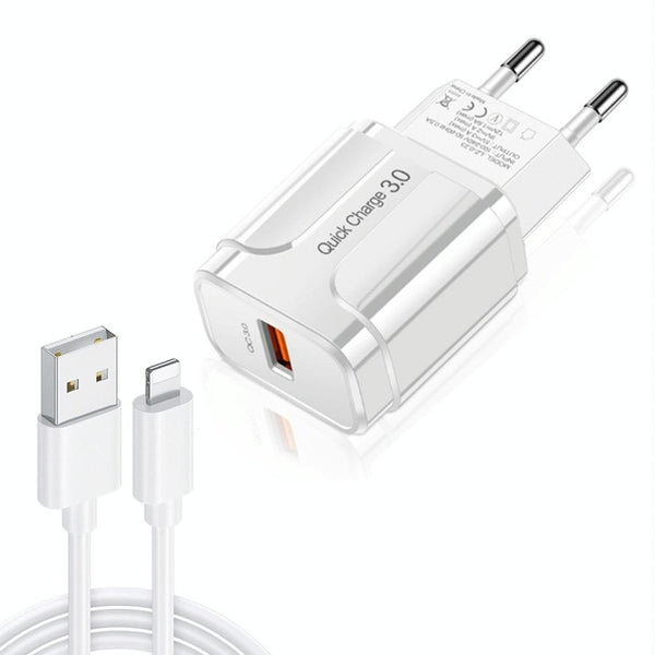 LZ-023 18W QC 3.0 USB Portable Travel Charger + 3A USB to 8 Pin Data Cable, EU Plug(White)