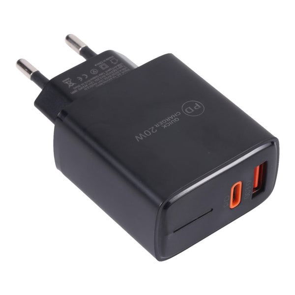 LZ-1130 PD 20W Type-C+QC 3.0 USB Fast Charger, Plug Type:EU Plug(Black)