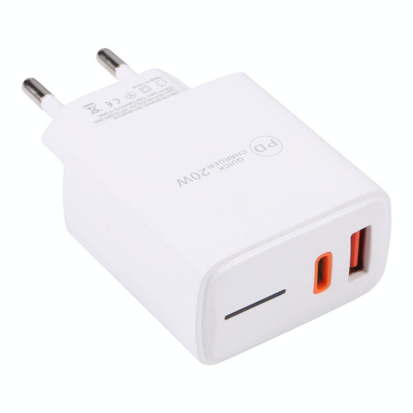 LZ-1130 PD 20W Type-C+QC 3.0 USB Fast Charger, Plug Type:EU Plug(White)