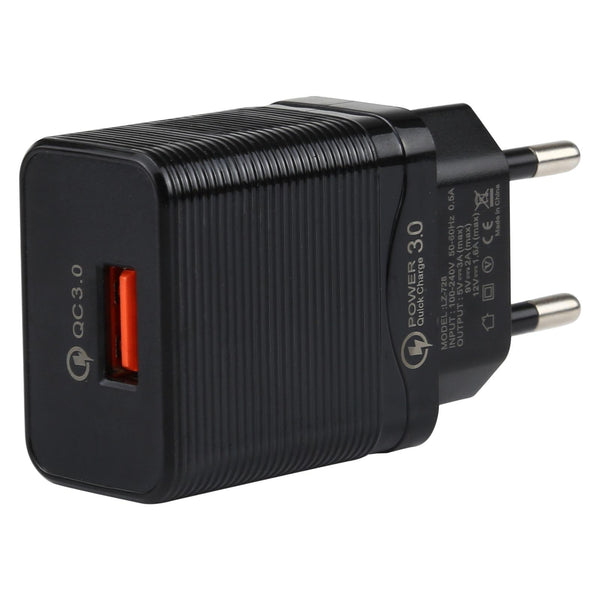 LZ-728 2 in 1 18W QC 3.0 USB Interface Travel Charger + USB to 8 Pin Data Cable Set, EU Plug, Cable Length: 1m(Black)