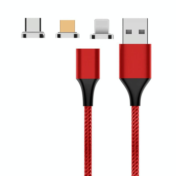 M11 3 in 1 3A USB to 8 Pin + Micro USB + USB-C / Type-C Nylon Braided Magnetic Data Cable, Cable Length: 2m (Red)