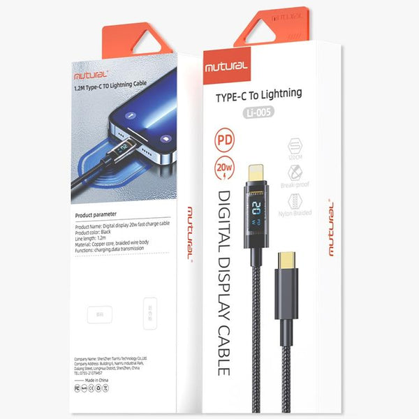 Mutural Li-CC005 1.2m PD20W Transparent Digital Display USB-C / Type-C to 8 Pin Charging Data Cable