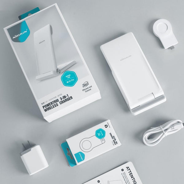 NILLKIN 3 in 1 Wireless Charger with Xiaomi S1 Pro Watch Charger, Plug Type:CN Plug(White)