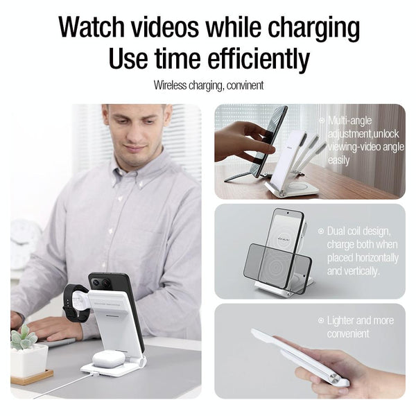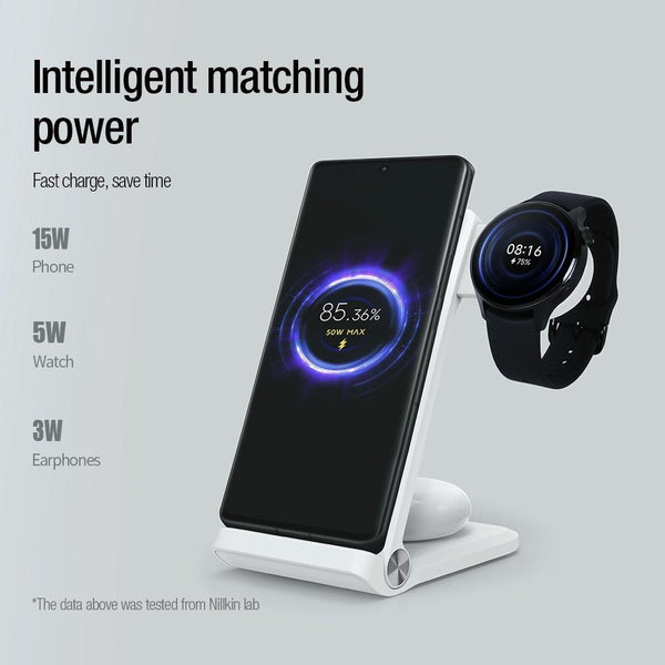 NILLKIN 3 in 1 Wireless Charger with Xiaomi S1 Pro Watch Charger, Plug Type:EU Plug(White)