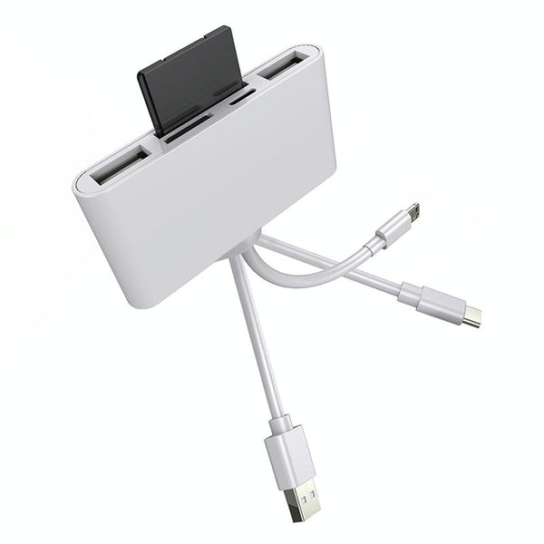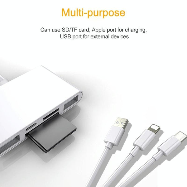 NK-1032 Pro 5 in 1 8 Pin + Type-C / USB-C + USB + TF Card + SD Card Multi-function Camera Reader Adapter