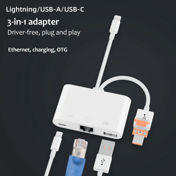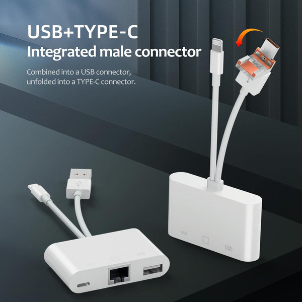 NK-107TL Pro USB-C / Type-C, 8 Pin, USB to 8 Pin, USB, RJ45 Multi-function Adapter(White)