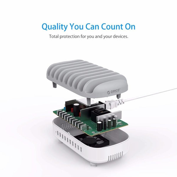 ORICO DUK-10P 120W 10 USB Ports Smart Charging Station with Phone & Tablet Stand, UK Plug(White)