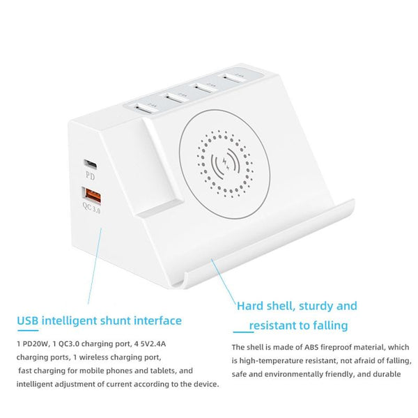 PD 20W +QC 3.0 Wireless Charging+6 Ports Multi-function Charger(UK Plug)