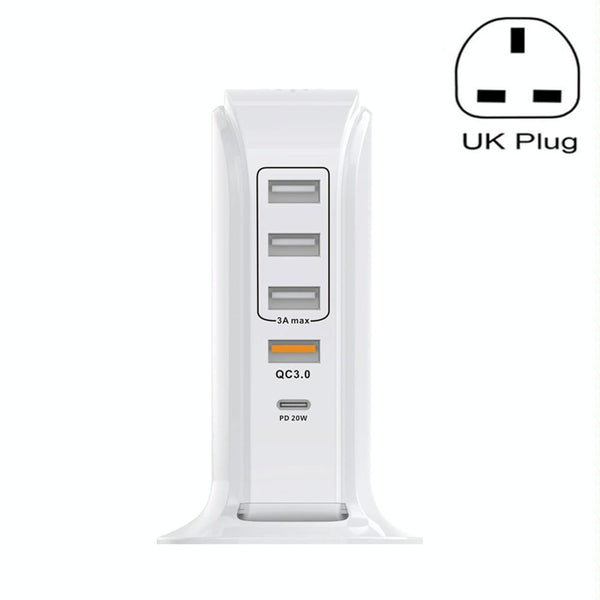 PD-36W PD3.0 + QC3.0 4-port USB Mobile Phone Charging Sailboat Multi Port Charger, UK Plug