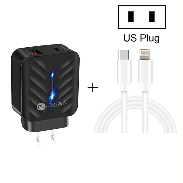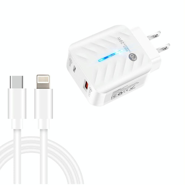 PD03 20W PD3.0 + QC3.0 USB Charger with Type-C to 8 Pin Data Cable, US Plug(White)