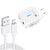PD03 20W PD3.0 + QC3.0 USB Charger with USB to 8 Pin Data Cable, US Plug(White)