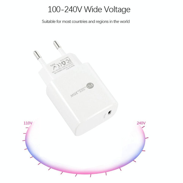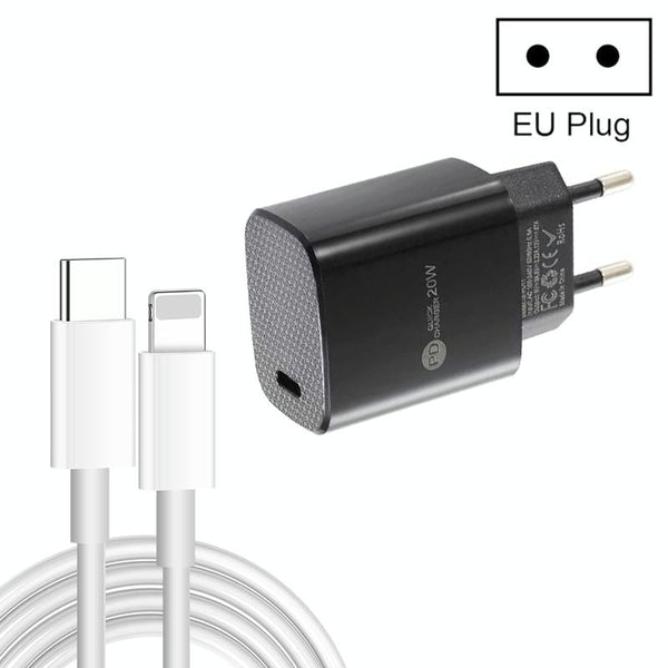PD11 Single PD3.0 USB-C / Type-C 20W Fast Charger with 1m Type-C to 8 Pin Data Cable, EU Plug(Black)