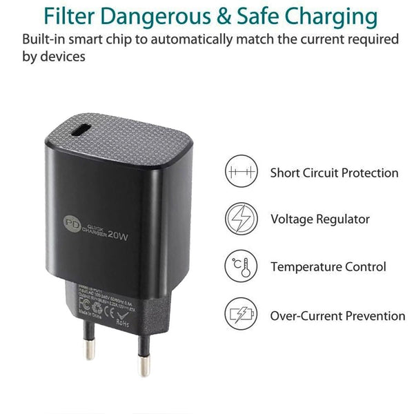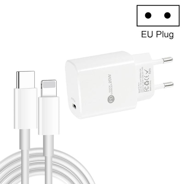 PD11 Single PD3.0 USB-C / Type-C 20W Fast Charger with 1m Type-C to 8 Pin Data Cable, EU Plug(White)