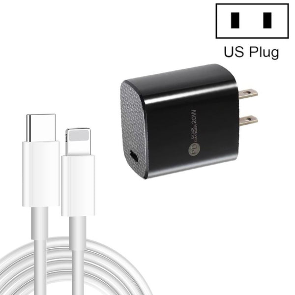 PD11 Single PD3.0 USB-C / Type-C 20W Fast Charger with 1m Type-C to 8 Pin Data Cable, US Plug(Black)