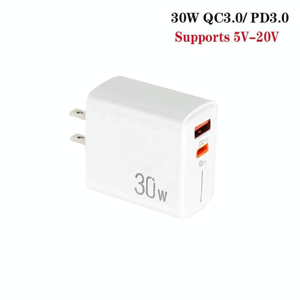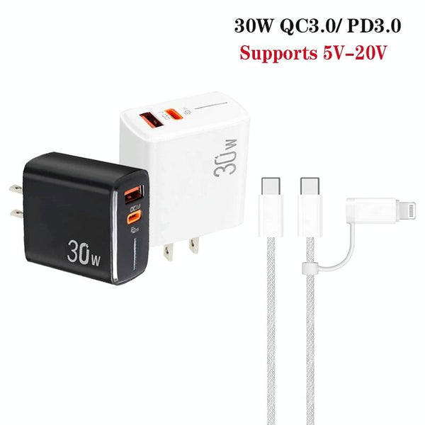 PD31 30W USB-C / Type-C + USB-A Charger with Type-C+8 Pin 2-in-1 Data Cable, US Plug(White)