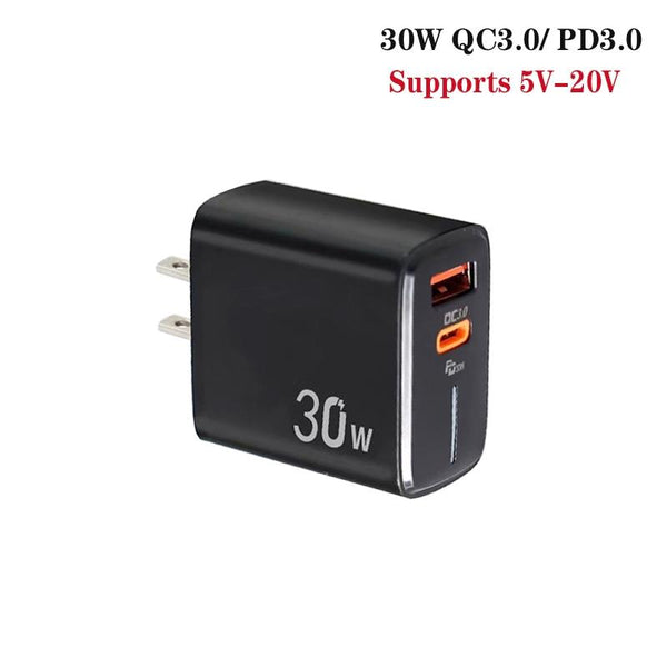 PD31 5V-20V 30W USB-C / Type-C + USB-A Multi Protocol Compatible Charger, US Plug(Black)