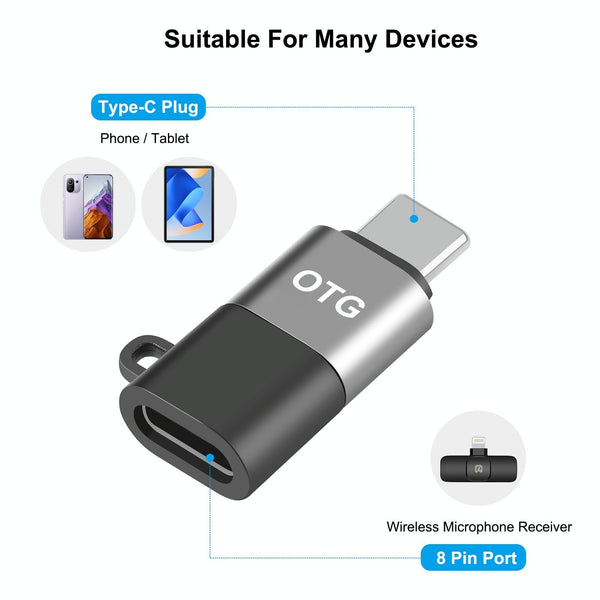 8. Support two-way power supply, suitable for lavalier wireless microphone adapter, Type-C mobile phone (including suitable for iPhone 15) adapter charging