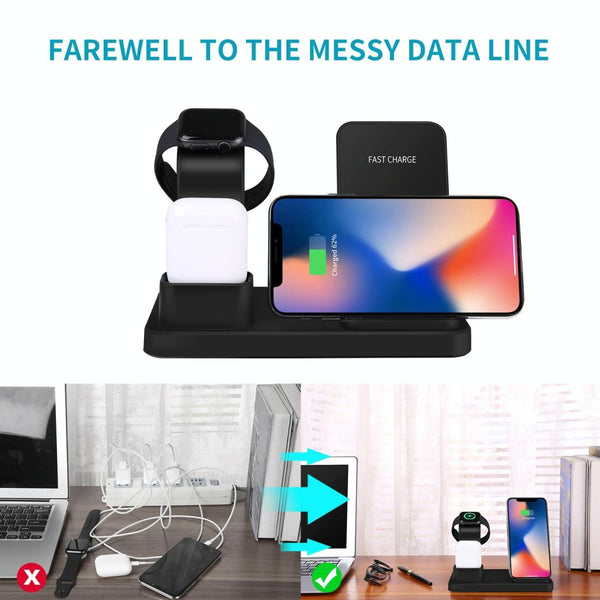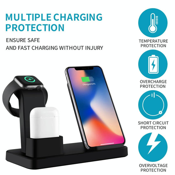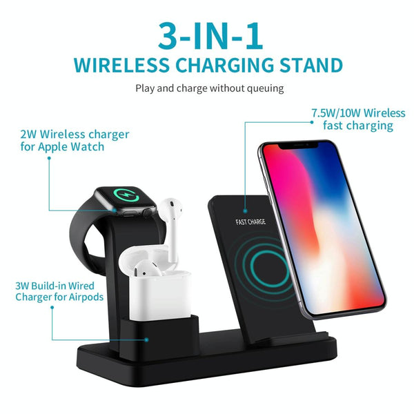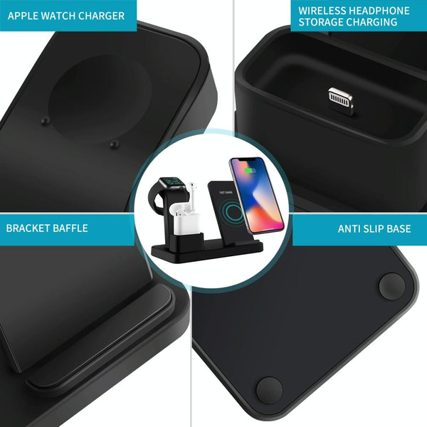 Q12 3 in 1 Quick Wireless Charger for iPhone, Apple Watch, AirPods and other Android Smart Phones(Black)