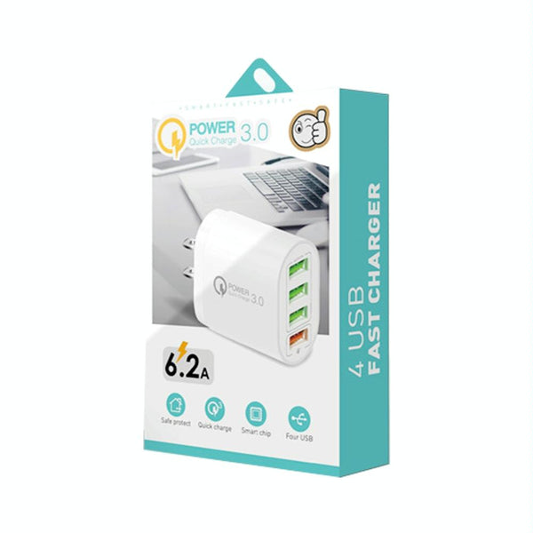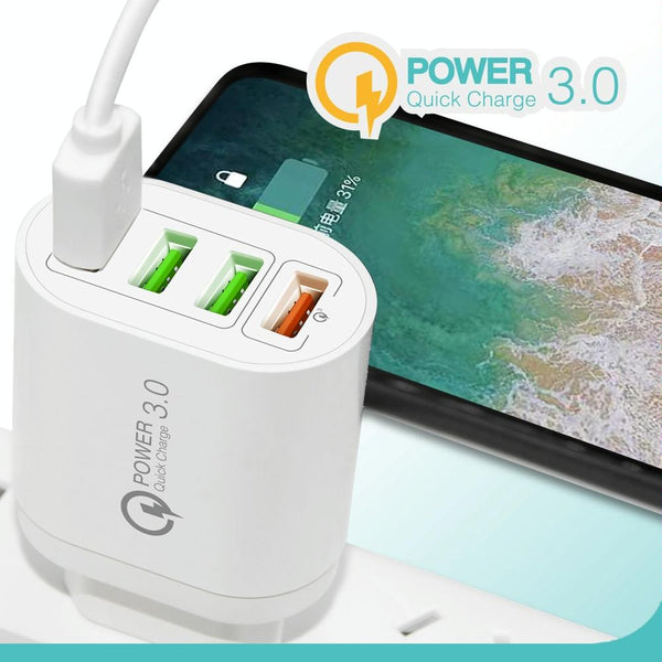 QC-04 QC3.0 + 3 x USB2.0 Multi-ports Charger with 3A USB to 8 Pin Data Cable,US Plug(White)