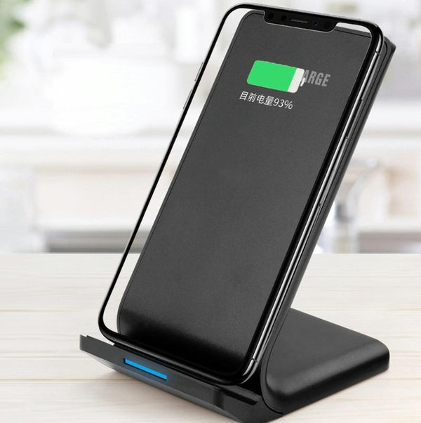 R2 10W Vertical Mobile Phone Wireless Charger Smart Fast Charge Charging Stand Desktop Stand(Black)