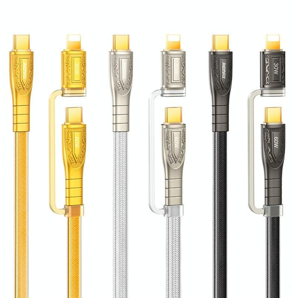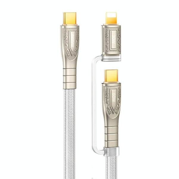 REMAX RC-C165 Prime 1.2m 60W Type-C to Type-C + 8 Pin Braided Fast Charging Cable(Silver)