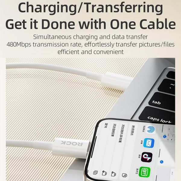 ROCK P8 Prime Series 1m USB-C / Type-C Fast Charging Data Cable, Interface:PD27W 8 Pin(White)
