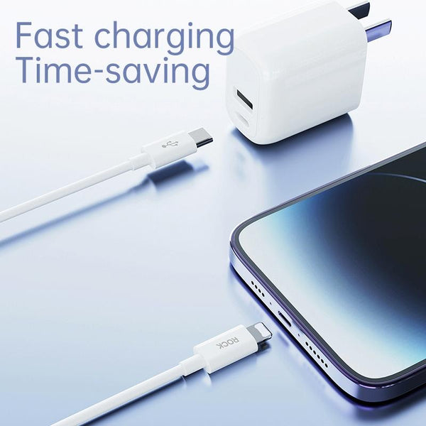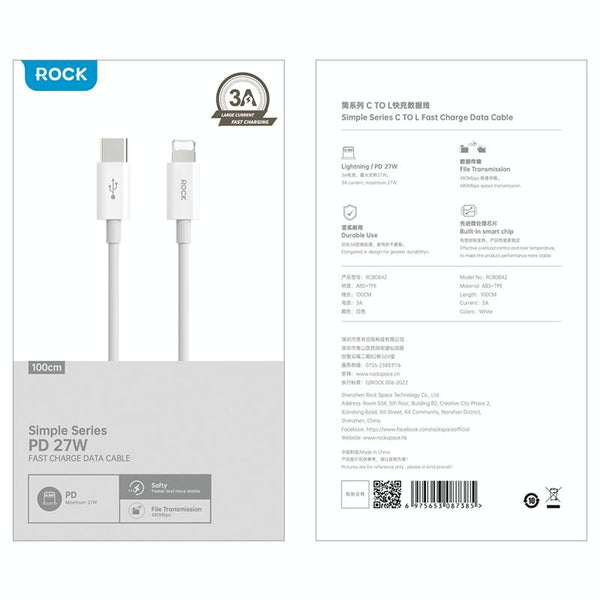 ROCK Simple Series 1m 27W USB-C / Type-C to 8 Pin Fast Charging Data Cable(White)
