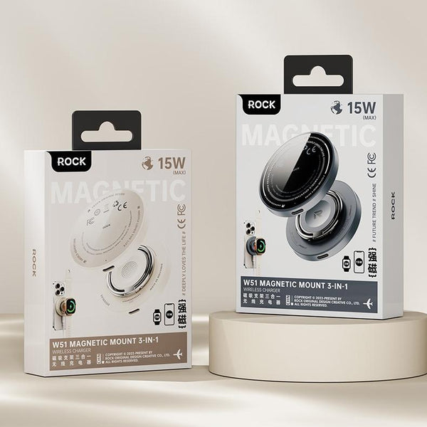 ROCK W51 15W Magnetic Ring Holder 3 in 1 Wireless Charger (White)