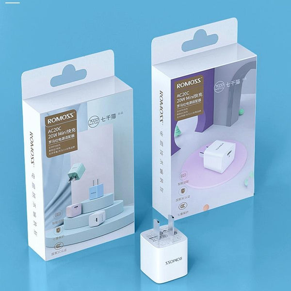 ROMOSS AC20CminiPD 20W Power Adapter Travel Charger For IPhone IPad With Cable Kit Pink