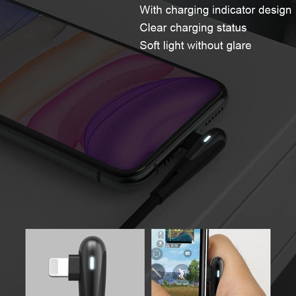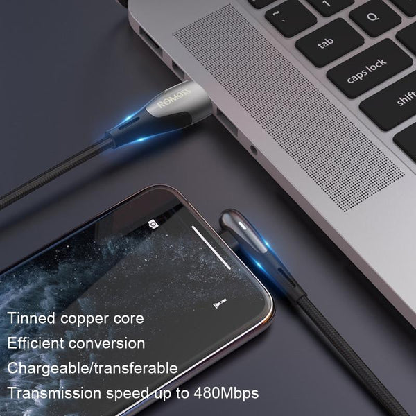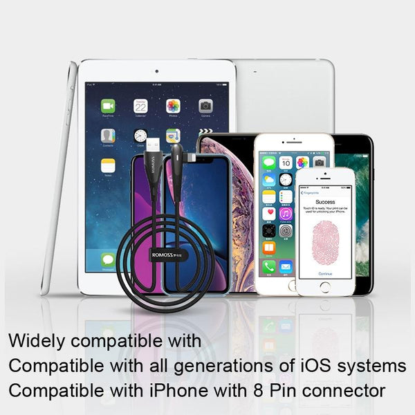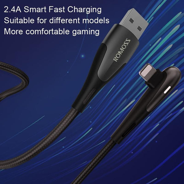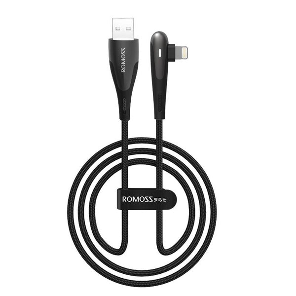 ROMOSS CB12C USB To 8 Pin Elbow With Light 2.4A Fast Charge Data Cable, Size: 1.2m(Black)