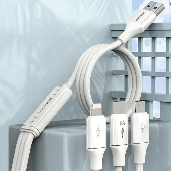 ROMOSS CB251N 66W 8 Pin + USB-C/Type-C + Micro USB 3 In 1 Charging Data Cable (1.8m )