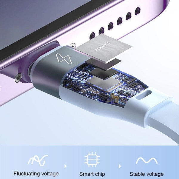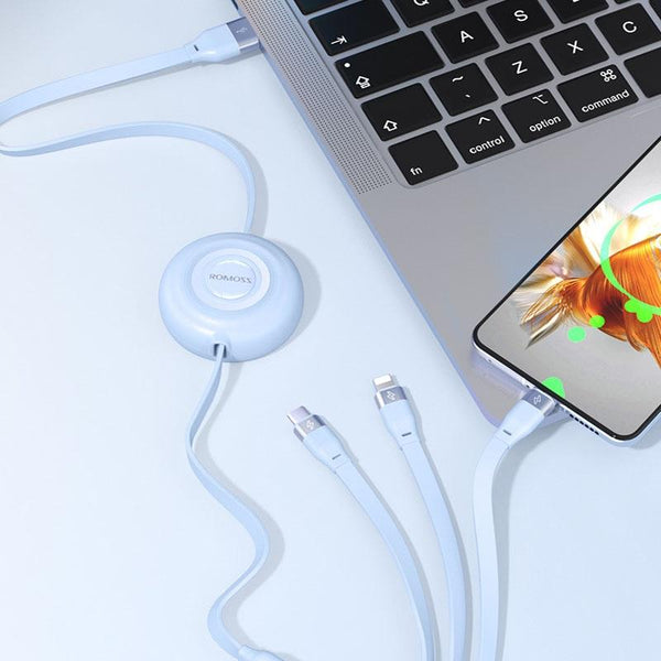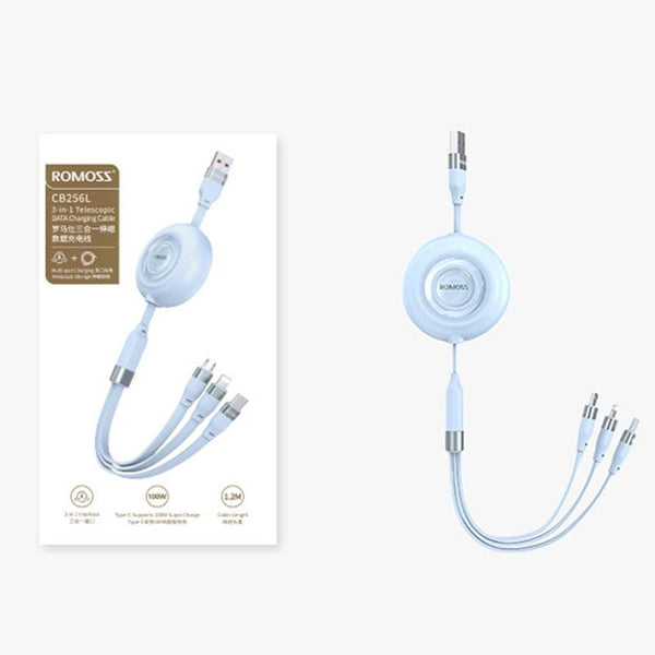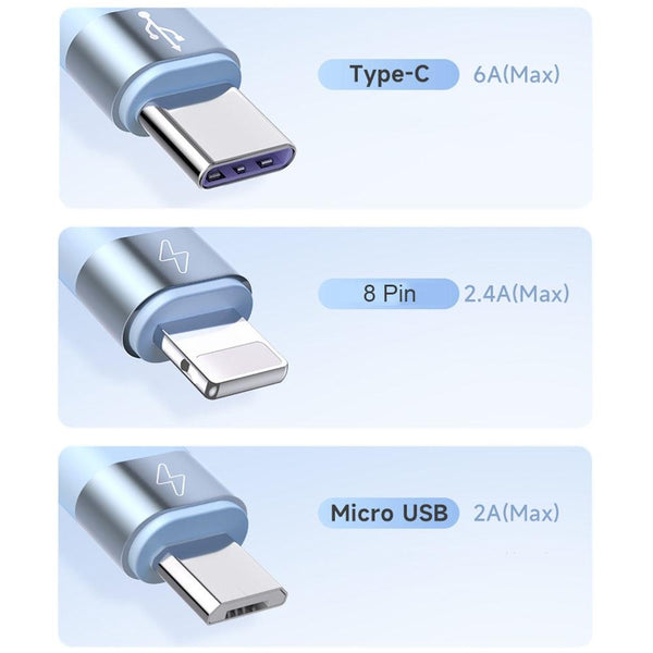 ROMOSS CB256L 1.2m 6A 100W 8 Pin + USB-C/Type-C + Micro USB 3 In 1 Charging Cable(Purple)